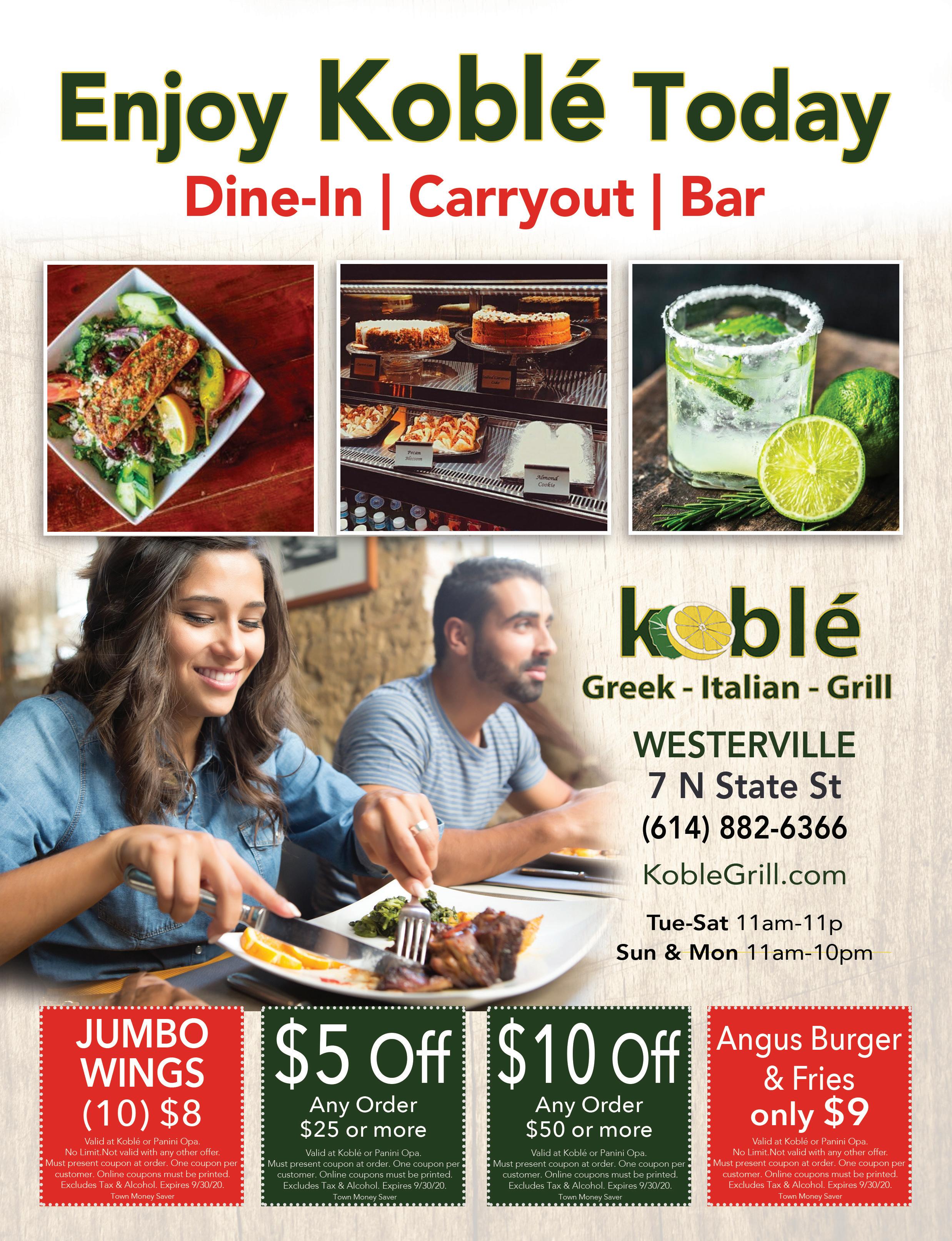 WWW.LACLEANERS.COM 50% OFF Dry Cleaning (1st Time Customers Only) 10% OFF Any Dry Cleaning (Existing Customers) Any Size Comforter $25 Any Size Area Rug Must present coupon with incoming order. Does not include Leather, Suede or Wedding gowns. Expires 9/10/20. WEST Must present coupon with incoming order. Does not include Alterations, Leather, Suede or Wedding gowns. Expires 9/10/20. WEST Must present coupon with incoming order. Expires 9/10/20. WEST FREE pickup & Delivery. Must present coupon with incoming order. Expires 9/10/20. WEST 614-882-2995 6113 Maxtown Rd., Westerville, OH 43082 (In Back) Free Pickup & Delivery PER SQ FT ($2.50 per sq ft if there is fringe) $2 FULL SERVICE BAR BEER, LIQUOR & MIXED DRINKS AVAILABLE 7 DAYS A WEEK HAPPY HOUR DAILY 4PM-8PM! Puerto Vallarta Puerto Vallarta Puerto Vallarta Puerto Vallarta Puerto Vallarta Puerto Vallarta $4 OFF Any Order of $20 or More Puerto Vallarta • Pataskala-Newark-HeathStubenville-Westerville. Not valid with any other offers. Valid with coupon. Expires 9/10/20. $5 OFF Any Order of $30 or More Puerto Vallarta • Pataskala-Newark-HeathStubenville-Westerville. Not valid with any other offers. Valid with coupon. Expires 9/10/20. $10 OFF Any Order of $50 or More Puerto Vallarta • Pataskala-Newark-HeathStubenville-Westerville. Not valid with any other offers. Valid with coupon. Expires 9/10/20. DARLENE‛S CREATIONS & WATERFRONT PRINTING 614-890-0975 275 Suite D Old County Line Rd, Westerville OH. 43081 Open Mon-Fri 11am-9pm • Sat & Sun 2pm-6pm WE ALSO PRINT: ATHLETIC BOARDS • APPAREL PRINTING • BANNERS CANVAS PRINTS • GRAPHIC DESIGN • LOGO DESIGN PHOTO STICKERS • VEHICLE LETTERING • WINDOW DESIGNS WE CAN CREATE CUSTOM EMBROIDERY Face Masks 3 Standard for $15 (Adults & Children) Custom Mask $10 each SHIPPING AVAILABLE CURBSIDE PICK-UP We Offer Westerville Mascot Masks Voted Best Locally Owned Breakfast Joint In Columbus By NBC Channel 4 $2.00 OFF Good Mon-Fri Any Purchase of $10 or More $5.00 OFF Good Mon-Fri Any Purchase of $25 or More Not valid with any other offer. Expires 9/10/20. Not valid with any other offer. Expires 9/10/20. Far More than a Great Breakfast! Hours: Mon-Sat: 6:30am-2:30pm, Sun: 8am-2:30pm www.pancakehousecolumbus.com 129 W. Schrock Rd. (Beside Kroger gas station & across from Roush Honda) 614-898-6500 Early Bird Breakfast Special $4.99 (Mon-Fri 6:30am to 8:30am) AskServerYour Family owned and operated since 2009 FREE Mini Golf Buy 1 Game, Get a 2nd Game FREE ½ PRICE BATTING CAGE DEAL 5 Tokens* for $5 (reg. $10) *each token is 16 bats FREE Mini Golf Buy 1 Game, Get a 2nd Game FREE One coupon per visit, per transaction. Free game of equal or lesser value. With TMS coupon only. Not valid with other offers. NO EXPIRATION. With TMS coupon only. Not valid with other offers. NO EXPIRATION. One coupon per visit, per transaction. Free game of equal or lesser value. With TMS coupon only. Not valid with other offers. NO EXPIRATION.
