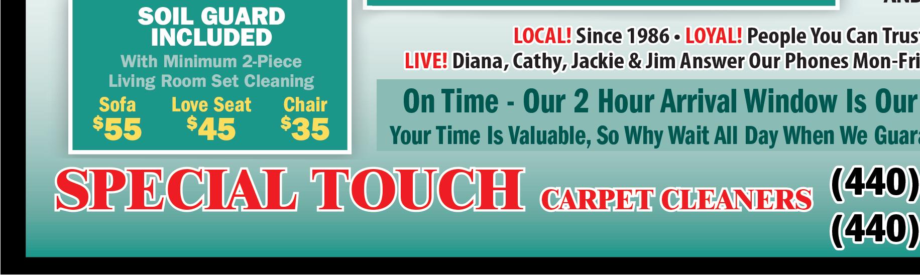 WWW.SPECIALTOUCHCLEANERS.COM | WESTLAKE Valeri Mariakis OH-6153A • Complete Tree Removal • Storm Risk Assessment • Tree & Shrub Pruning • Plant Health Care Services • Stump Grinding • Tree and Shrub Fertilization $200 OFF ANY SERVICE OF $1,000 OR MORE Coupons only valid on payments made by invoice due date. Late payments result in forfeiture of all discounts and coupons. Coupons valid at time of estimate. Not valid on PHC Services, prior written estimates or invoices. May not be combined with any other offer. Expires 10.15.20 $50 OFF ANY SERVICE OF $500 OR MORE Coupons only valid on payments made by invoice due date. Late payments result in forfeiture of all discounts and coupons. Coupons valid at time of estimate. Not valid on PHC Services, prior written estimates or invoices. May not be combined with any other offer. Expires 10.15.20 PLUS $100 EXTRA SIGNING BONUS WHEN WORK IS BOOKED AT TIME OF ESTIMATE Valid on jobs of $1,000 or more at time of estimate. Coupons only valid on payments made by invoice due date. Late payments result in forfeiture of all discounts and coupons. Coupons valid at time of estimate. Not valid on PHC Services, prior written estimates or invoices. COUPON MAY BE USED WITH OTHER OFFERS. Restrictions Apply. Expires 10.15.20 Furnace Tune-Up $79.00 Anderson Heating & Cooling • Tel: (440) 221-7978 roviding ealtHy indoor omfort” With Coupon. Not valid with other discounts. Expires 10/15/20