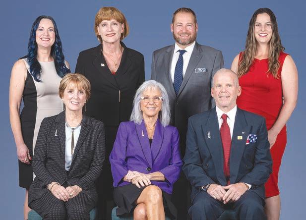 Town of Fountain Hills Town Council, front row left to right: Councilmember Peggy McMahon, Mayor Ginny Dickey, and Councilmember Gerry Friedel. Back row, left to right: Vice Mayor Sharron Grzybowski, Councilmember Brenda Kalivianakis, Councilmember Allen Skillicorn, and Councilmember Hannah Toth.