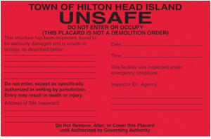 UN LETRERO ROJO indica que un edificio está seriamente dañado y no es seguro. En estos edificios no se debe ingresar, ni ocuparse bajo ninguna circunstancia. La entrada podría provocar lesiones o la muerte. El edificio se puede reparar o demoler. En cualquier caso, se debe obtener un permiso de la Oficina de permisos de emergencia antes de que comience el trabajo.