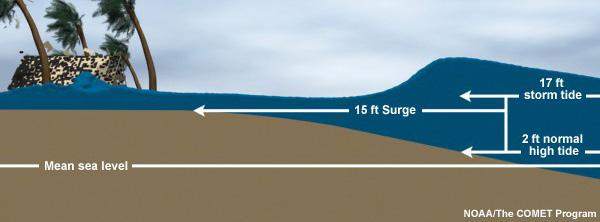 huracanes, incluyendo mareas ciclónicas, lluvias torrenciales, inundaciones, vientos fuertes, tornados y corrientes caudalosas. De estos, las mareas ciclónicas son las que pueden causar mayores pérdidas de vida en las zonas costeras.