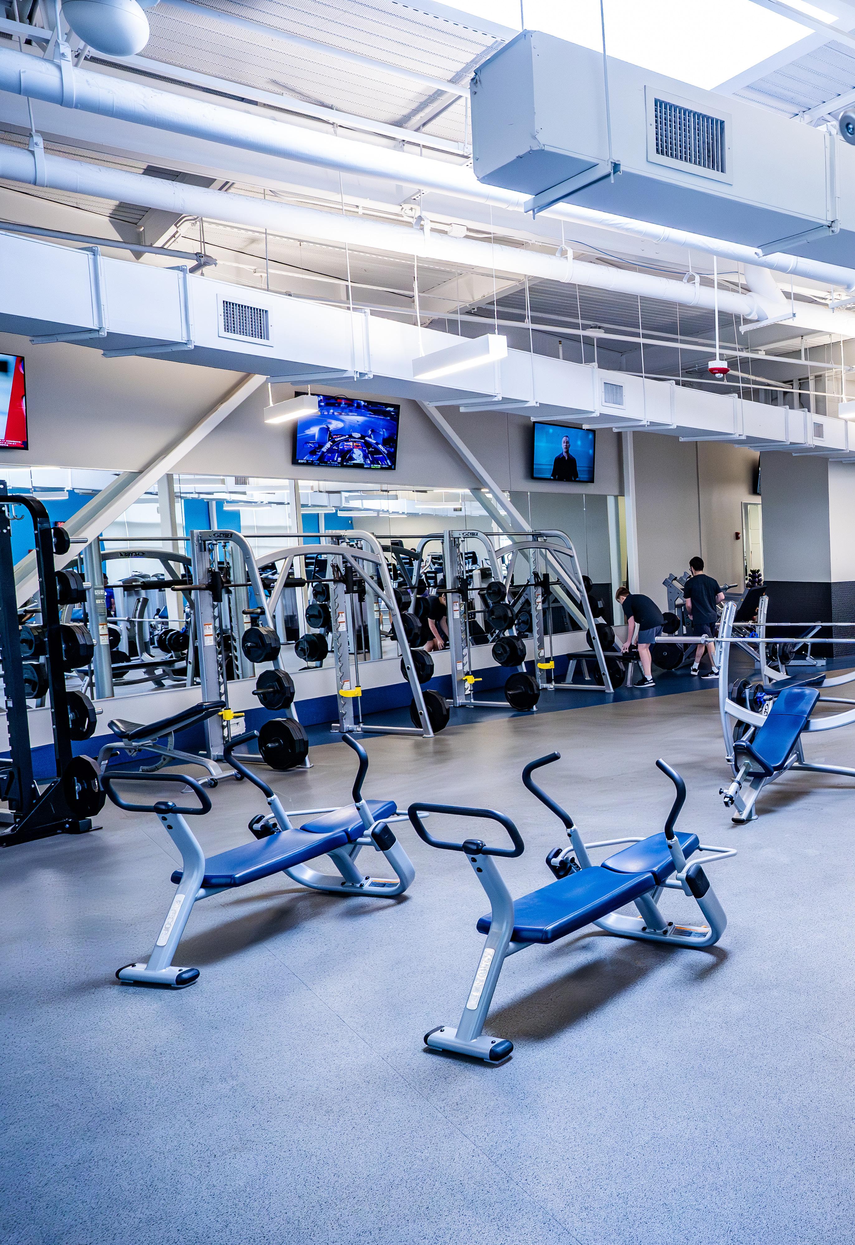 Gymnasium. Full-sized gym with a curtain that can be dropped to create two halfgym spaces. The full gym has a main basketball court, main volleyball court, and four pickleball courts. Each half gym has a small-sided basketball gym, a full volleyball court, and two pickleball courts. Contact The Rec for additional details.