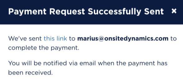 Once we have created a Payfast link for the client we get the following confirmation that it has been e mailed to him / her