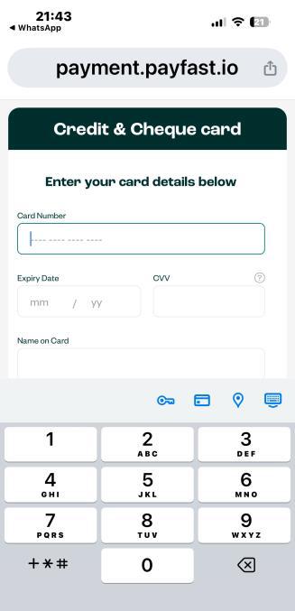 We utilize the PAYFAST platform for processing monthly subscription payments Clients must have a credit card or a cheque account card, as debit cards are not accepted