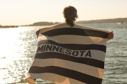 Mini stripedwithcontrast borderblanket. Heirloom quality, machine washable.