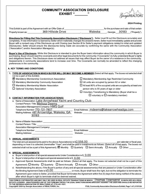 369 Hillside Dr. Waleska GA, 30183 LAKE ARROWHEAD W E L C O M E TownRG.com | 770-280-4560