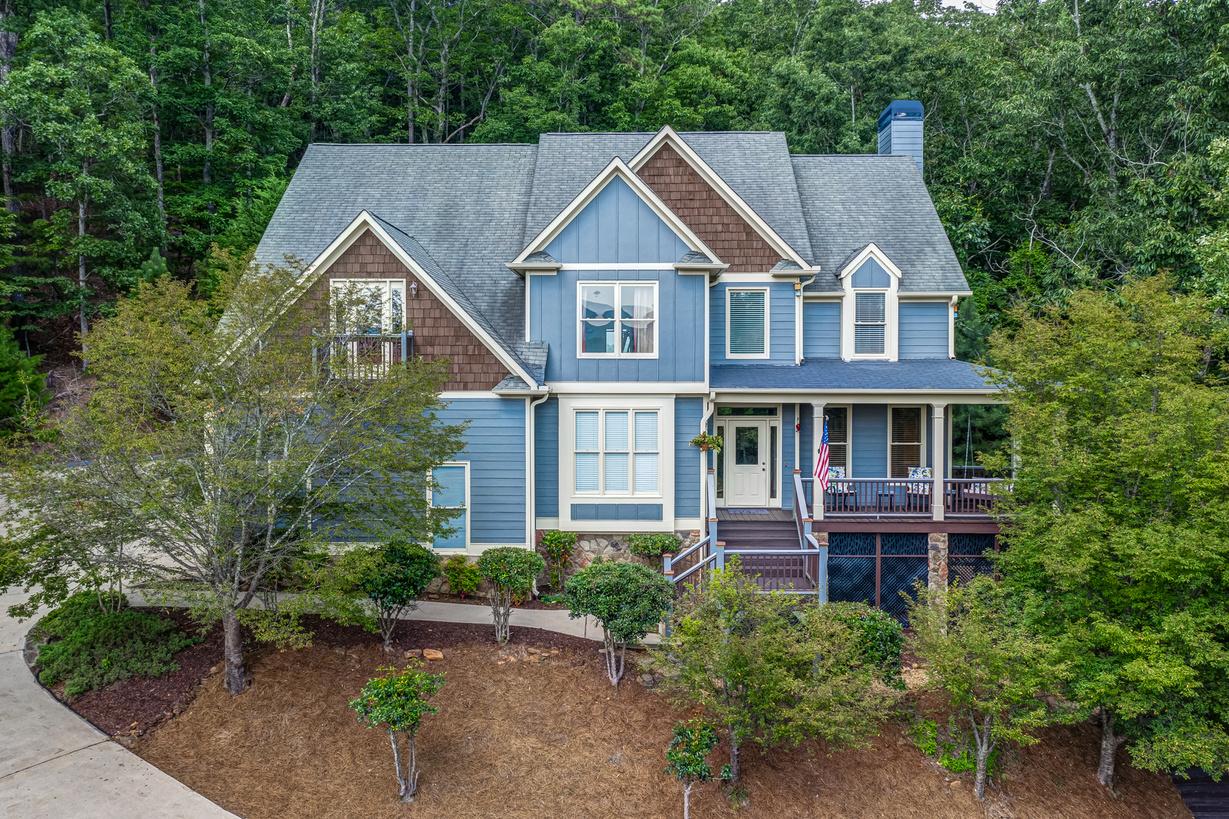This modern "Arts and Crafts" house in Lake Arrowhead, Georgia, on the north side, is known as the "quiet side of the lake." It offers complete privacy and has incredible 4-season, long-range views. The property is secluded, and you can't see or hear any other houses from here. The house has a plethora of windows, all of which offer beautiful views, including the long-range western views from the front. You can enjoy breathtaking sunsets every day! The house has all the amenities you would expect from a 4-5 bedroom, 3.5 bath home, including two walk-in closets, two double vanity granite sinks, three porches, including a "star viewing" porch, coffered and tray ceilings, hardwood floors, stone fireplace, 9ft ceilings, and a soaring 20ft ceiling in the main living area, which is flooded with natural light through double tall windows. The house also has a large walk-in pantry, a separate laundry room, and an oversized 2-car garage with a tall ceiling and two 4-post car lifts. You can use this garage to store classic cars, ATVs, jet skis, kayaks, boats, or anything else you need. There's also a bonus 930 square foot finished heated space used as two separate rec rooms on the terrace level, which can be used as a dedicated home office space, full bath with tile walk-in shower, private entrance, and private parking. It's easy to upgrade this space for an AirB&B or in-law suite. The finished terrace level space also offers a large storage area and a separate heated 12'x13' workshop. The exterior of the house was painted in March 2022, and new HVAC systems were installed in December of the same year. The original owners meticulously maintained this house, and you can ask to see the details of all the maintenance work. The private fenced backyard has a small pond, fountain, and greenhouse, and the front of the house has cherry trees that bloom twice a year, adding to the beauty. You can also enjoy the abundant wildlife that lives around the house. The property is located in a gated lake and golf community, offering 24-hour security and excellent amenity packages. It's only an hour north of Atlanta and provides peace and quiet above the power lines. This very special house is waiting for you!