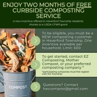 Contact Havcompost@gmail.com for information about training and videos and how you can try it at home. Learn about wasting less, fighting climate change and making free organic fertilizer! Learn how Haverford Township offers Discount Compost Bins or FOUR months free composting service pick ups.