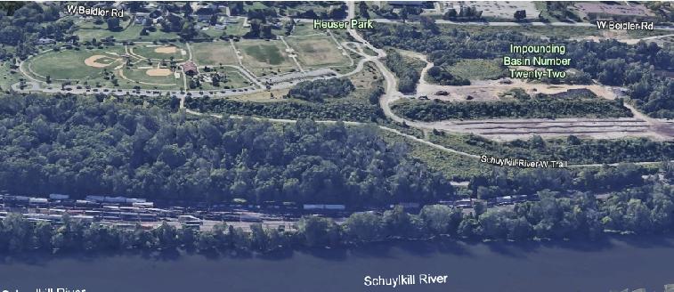 Two of the impounding basins were located in Upper Merion in areas referred to as “North Abrams” and “Middle Abrams.” In 2001, Upper Merion Township purchased these two basin areas from the state. The areas had very little vegetation due to the silt. Upper Merion sold the remaining silt, and the land was filled, graded, and compacted. Thirty-two acres of the North Abrams land was transformed into Heuser Park with athletic fields, a playground, and a clubhouse for Township organizations. The Middle Abrams acquisition became Bob Case Park, which is just south of Heuser Park. The Schuylkill River West Trail was completed in 2022 and runs parallel to the river from Bob Case Park, through Heuser Park, and through to Valley Forge National Historical Park at Sullivan's Bridge.