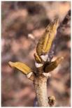 So, what trees at The Willows and Skunk Hollow have the best buds? Let's start with the buds of the tulip tree, one of the tallest trees in eastern North America. If its tall, straight trunk and interlacing bark are not enough to identify it at this time of year, its buds can help: they are shaped like a duck's bill! They have two outer scales which are valvate — that is, paired without overlapping, like two hands in prayer. The scales are smooth, leathery and . . . purple! In a few weeks, they will open up into maple-like leaves that are missing their middle “finger” and beautiful, tulip-like flowers in brilliant shades of yellow, green and orange. Another tree with distinctive buds found at The Willows and Skunk Hollow is the American beech. This tree is fairly easy to identify at any time of year because of its smooth, light gray bark on a thick trunk that looks like an elephant's leg, the hearts and initials so often carved into its bark, and the light brown, dried up, papery leaves still clinging to some of its branches. But March provides another clue: long, thin, sharply-pointed, copper-colored buds with tightly overlapping scales.