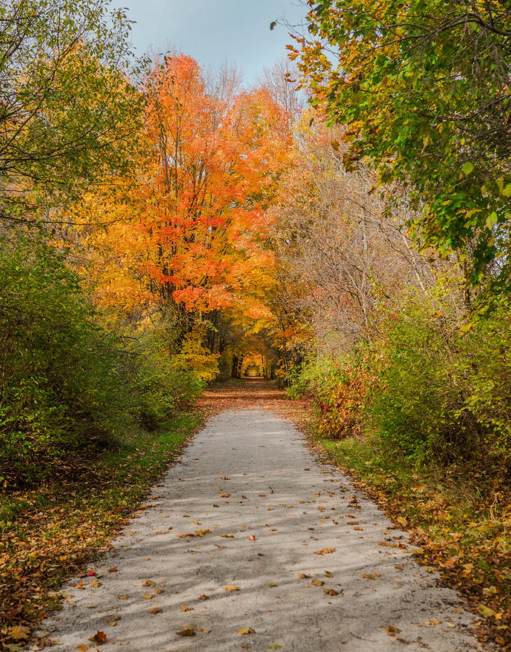 The Tiny Trail is a 23-kilometre multi-use recreational trail that was converted from a rail line in 1978. It is part of the Trans Canada Trail network, stretching from Tiny/Flos Line (near Elmvale) in the south to the southern outskirts of Penetanguishene in the north. The trail crosses agricultural and forested areas with several historic bridges along the way. The northern part is paved while the rest is surfaced with crushed stone.