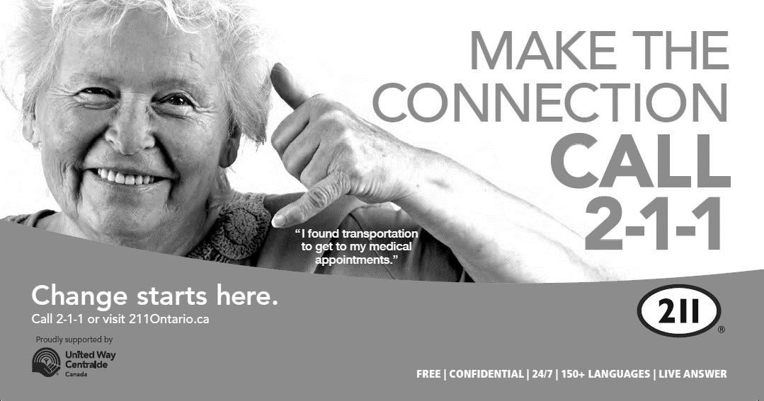 Visit Ontario.ca/seniors for an additional comprehensive guide of resources available in Ontario, under Programs and Services for Seniors in Ontario. Copies are available at your local Municipal Office.