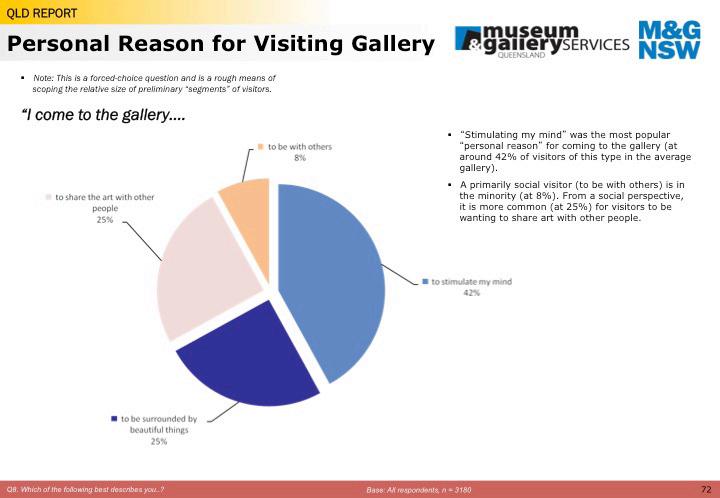 Did you know? The average visitor to Perc Tucker Regional Gallery in 2012-2013 was most likely to be: female (65%), 30 - 60 years old (53%), and would be visiting alone (48%) once a month (46%) for 30-60 minutes (70%).