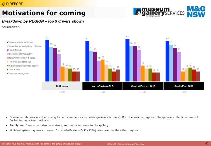 Visitors from both Galleries received the bulk of their updates direct from the Gallery (75% and 55%). For Pinnacles this was followed by Info on the internet (9%) and word-of-mouth (5%), whereas for Perc Tucker this was word-of-mouth (15%) followed by Townsville Bulletin (9%).