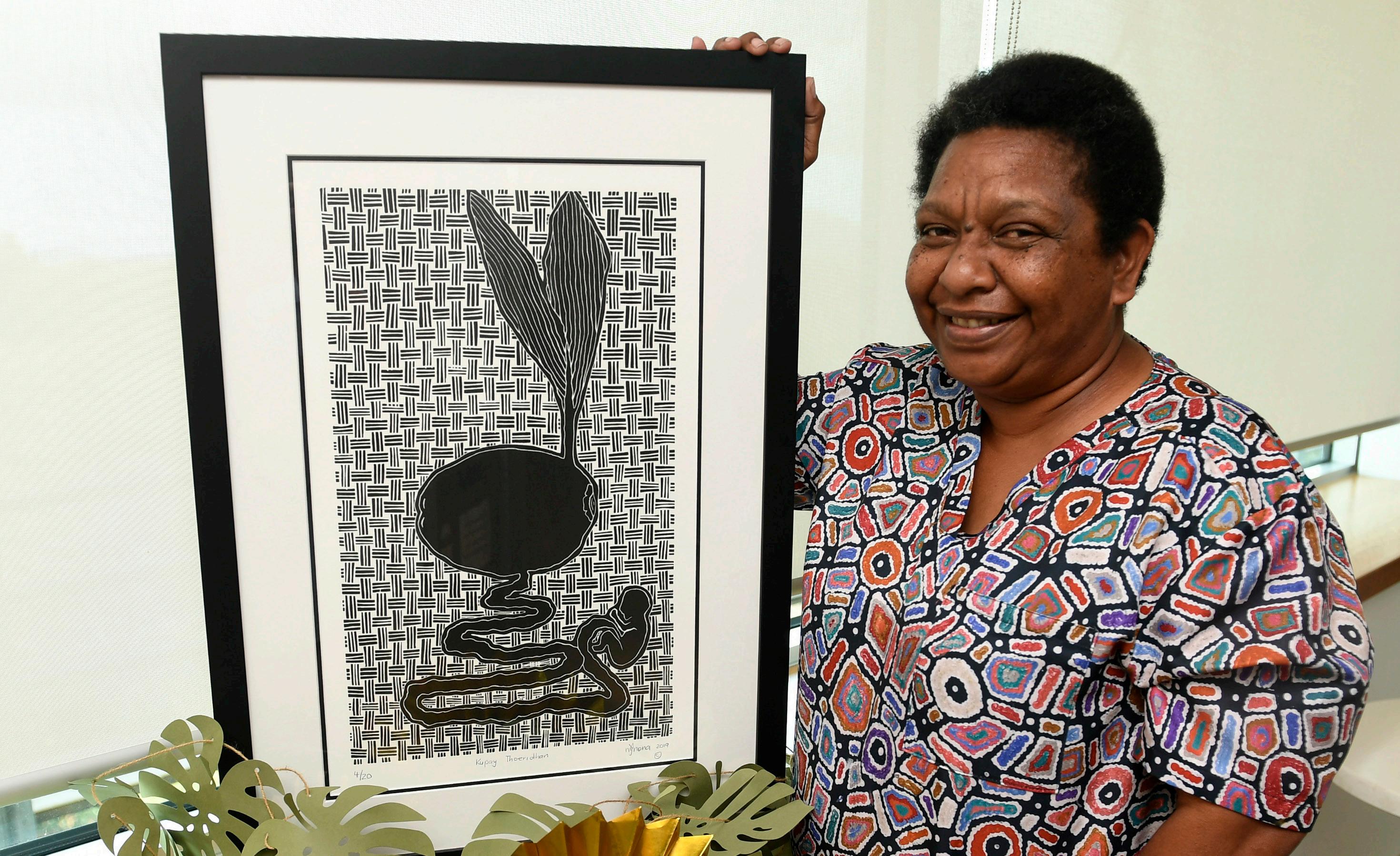 “Dr Jake Parker, the senior medical officer from Thursday Island, has given us this artwork as thanks for looking after a couple of women from TI who had extended six-month stays in Townsville and were seeing us for care.