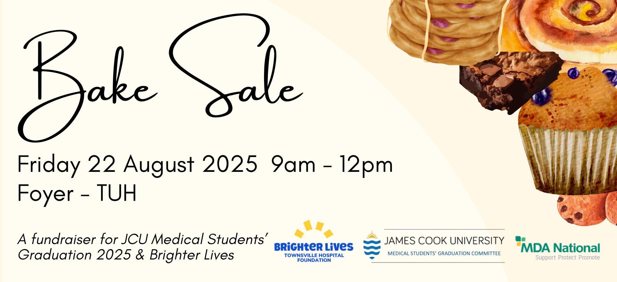 Grab a baked good for morning tea baked with love by the future medical professionals at James Cook University. Funds raised will support the JCU Medical Student Graduation and Brighter Lives.