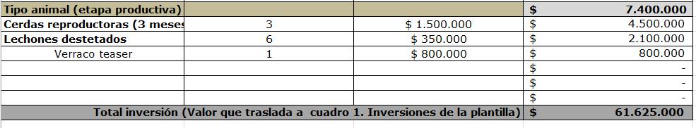 Este presupuesto contempla inversiones en infraestructura, equipamiento, animales, sanidad y administración. El valor proyectado es una estimación ajustada al contexto de una granja tecnificada de tamaño medio.