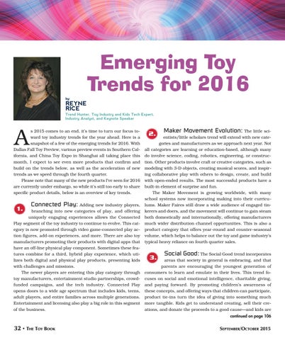 s 2015 comes to an end, it’s time to turn our focus toward toy industry trends for the year ahead. Here is a snapshot of a few of the emerging trends for 2016. With Dallas Fall Toy Preview, various preview events in Southern California, and China Toy Expo in Shanghai all taking place this month, I expect to see even more products that confirm and build on the trends below, as well as the acceleration of new trends as we speed through the fourth quarter. Please note that many of the new products I’ve seen for 2016 are currently under embargo, so while it’s still too early to share specific product details, below is an overview of key trends.