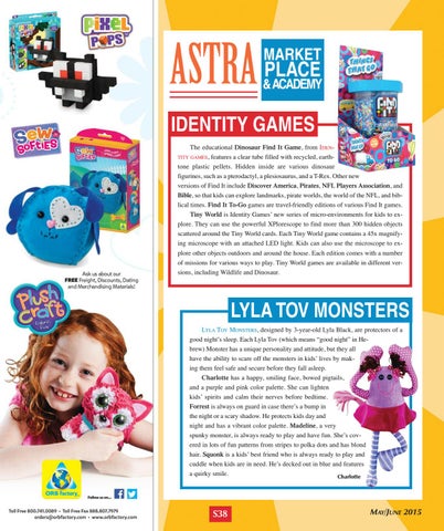 LYLA TOV MONSTERS, designed by 3-year-old Lyla Black, are protectors of a good night’s sleep. Each Lyla Tov (which means “good night” in Hebrew) Monster has a unique personality and attitude, but they all have the ability to scare off the monsters in kids’ lives by making them feel safe and secure before they fall asleep. Charlotte has a happy, smiling face, bowed pigtails, and a purple and pink color palette. She can lighten kids’ spirits and calm their nerves before bedtime. Forrest is always on guard in case there’s a bump in the night or a scary shadow. He protects kids day and night and has a vibrant color palette. Madeline, a very spunky monster, is always ready to play and have fun. She’s covered in lots of fun patterns from stripes to polka dots and has blond hair. Squonk is a kids’ best friend who is always ready to play and cuddle when kids are in need. He’s decked out in blue and features a quirky smile. Charlotte