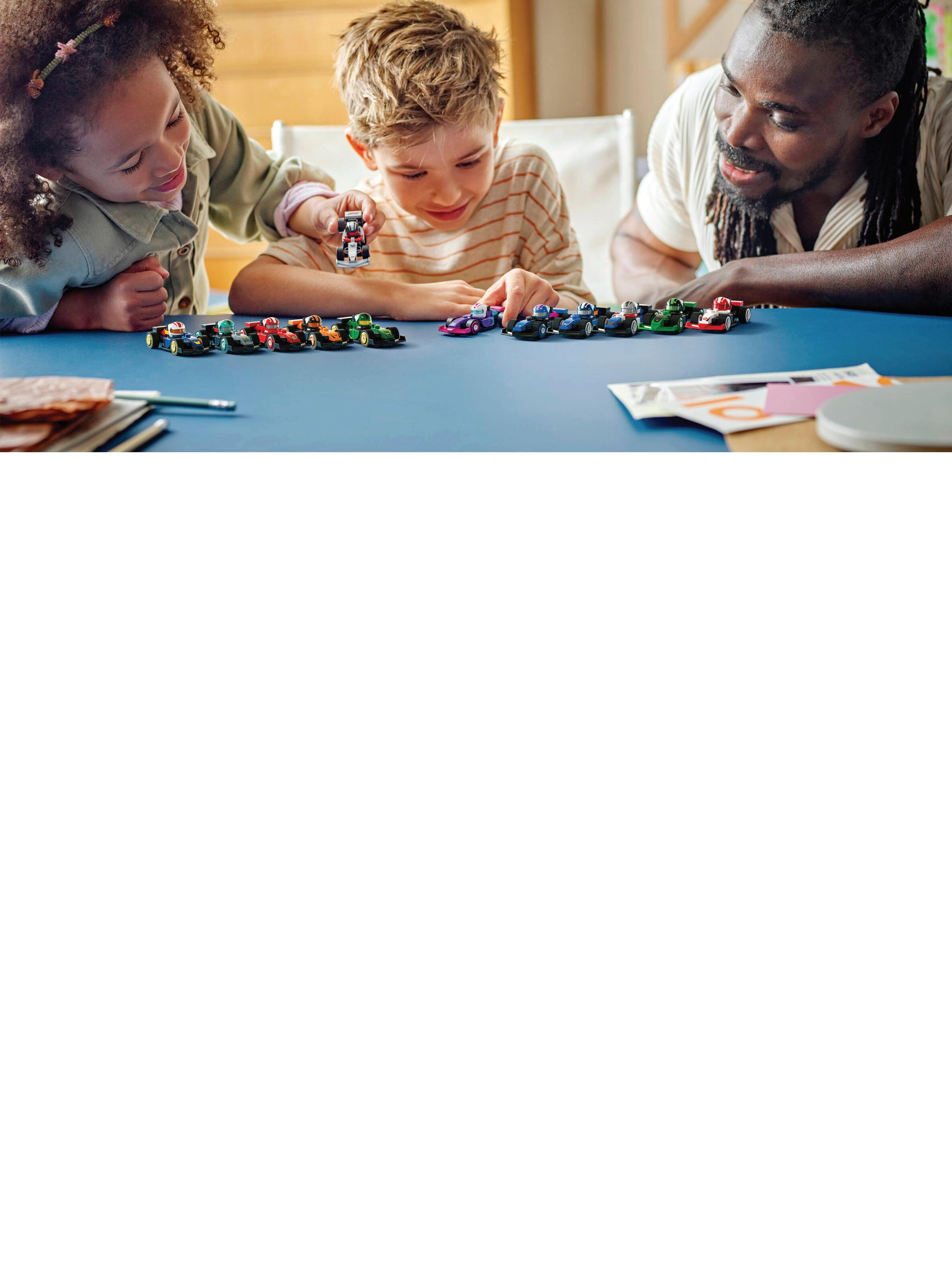 Race to collect and build up to 12 mystery Formula 1 cars with moving wheels and helmets. Race fans can collect teams such as McLaren, Aston Martin, Mer-