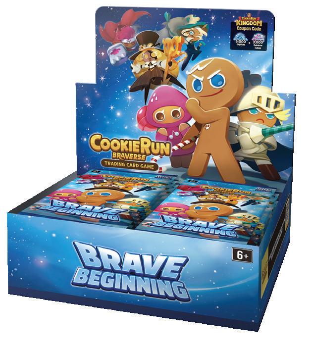 The worldwide CookieRun fandom hits the tabletop. CookieRun Braverse Trading Card Game: Brave Beginning brings the much-anticipated TCG to the U.S. Brave Beginning contains 159 regular and 44 hidden cards. Each pack contains nine cards, and each display contains 28 packs.