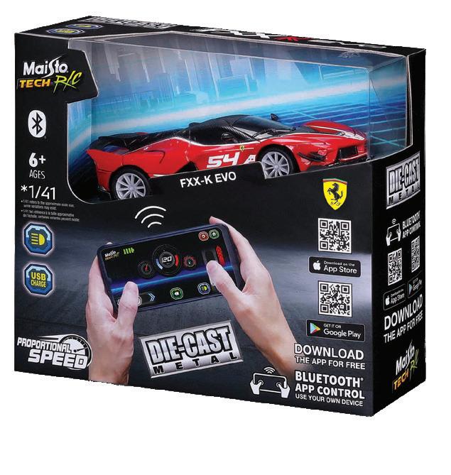 Strap in for high-speed with these polished, Bluetooth-controlled mini diecast R/C cars. Download the Maisto Tech app, and your phone becomes the car’s remote. Distributed by Toysmith.