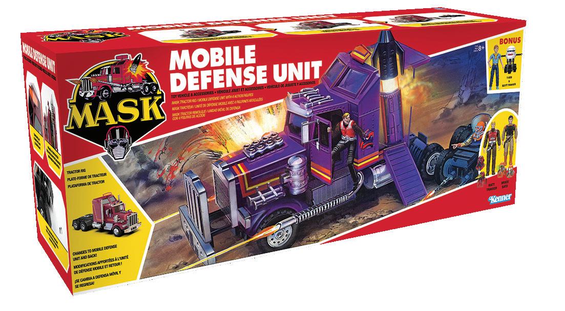 The M.A.S.K. collection reboots the Kenner line from the ‘80s with an updated range of action figures and vehicles, including the Thunderhawk, Condor, HTH (High Tech Helicopter), and the massive MDU (Mobile Defense Unit, pictured). Each transforms for battle with epic weapons and special features.