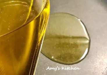 用苦茶油蒜拌青菜,平 底鍋放苦茶油。