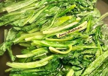 用煸蒜的原鍋加熱水燒 滾放(青菜)汆燙。