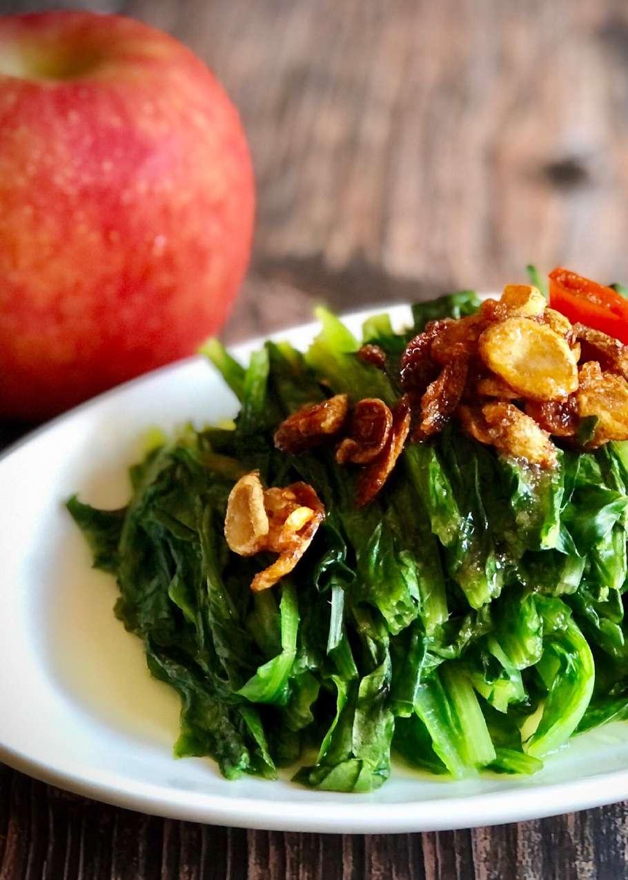到麵攤點碗麵習慣來盤燙青菜 用苦茶油煸香蒜加點鹽拌青菜好吃, 做法簡單值得一試。
