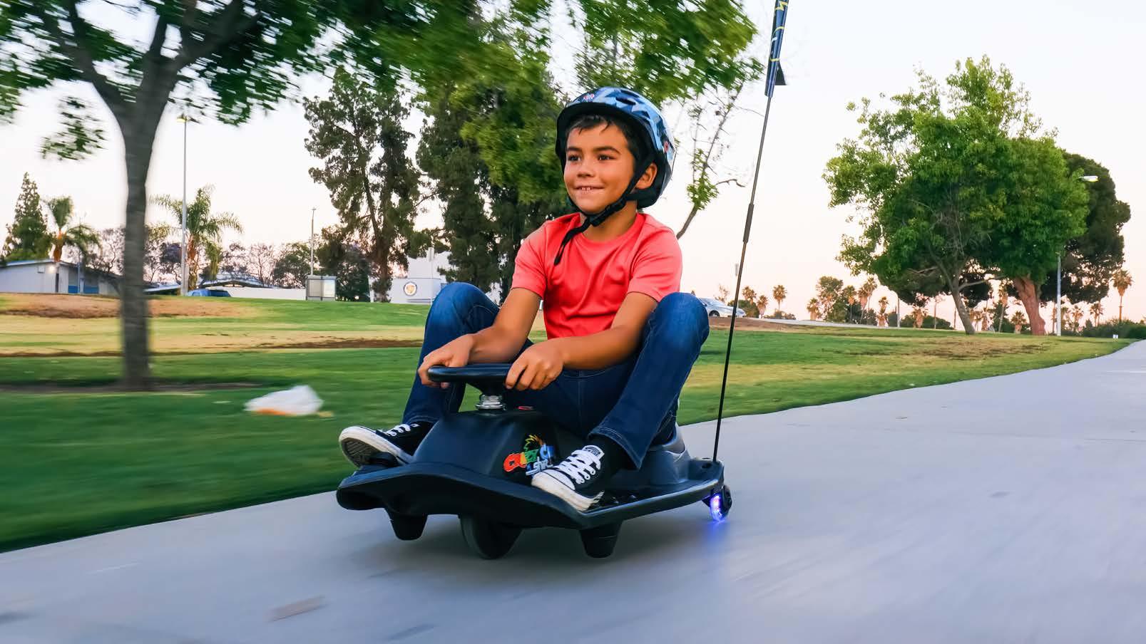 Kid-Powered Drifting Go Kart! Drive, drift, and spin with ease without any batteries to charge or maintain. Kid-powered means the Crazy Cart Shuffle is always ready for endless, noiseless, active fun! And it’s been intentionally designed to be simple to use and enjoyable from the very first ride.The adjustable frame with 5 length settings allows for the Crazy Cart Shuffle to grow with the rider and be ridden by siblings and friends (ages 4+) of various heights.