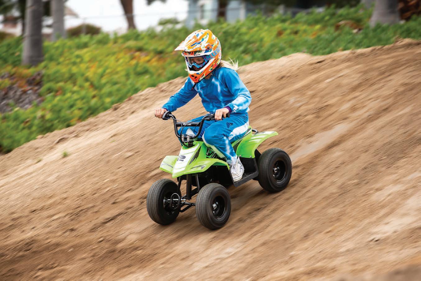 When the ba cky ard becomes too groomed and the pa vement too smoo th, the four−whee l Dirt Quad offers unlimited adventure – an d it’s built stron g and sturdy to conq uer tough trails and big bumps.