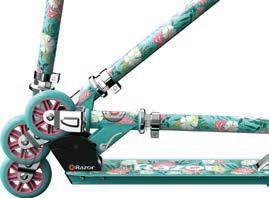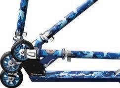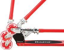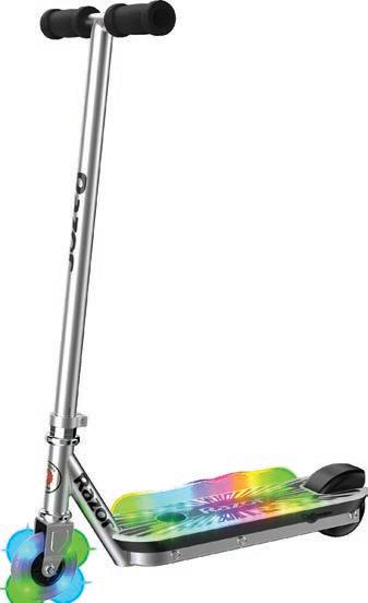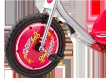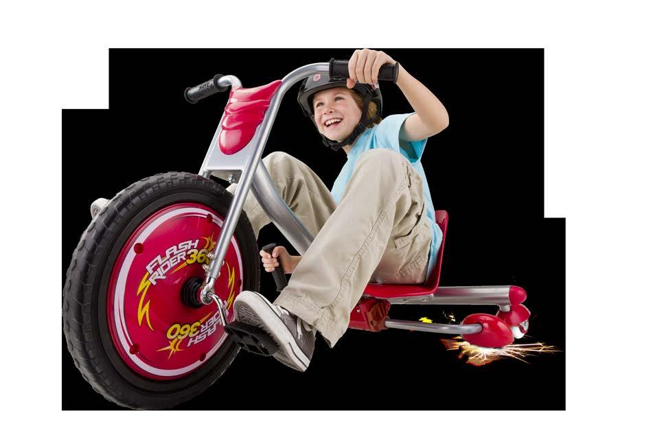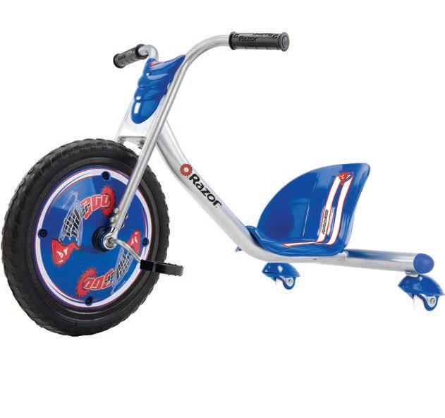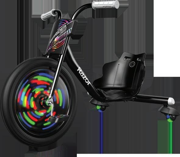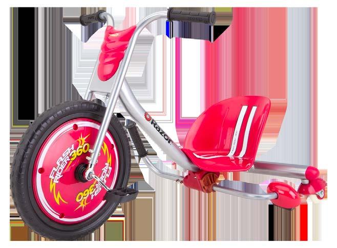 Yet another Razor improvement on the classic three−wheeler of the 1970s, the FlashRider 360 turns and drifts on dual inclined caster wheels and adds a Spark Bar. Now kids can spin and spark!