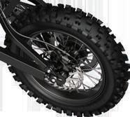 Wheels: Spoked with 14” front and 12” rear knobby tires