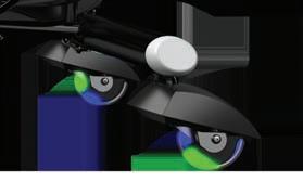 Front Tire: Vibrationactivated, multicolor LED “Lightshow” with three light free