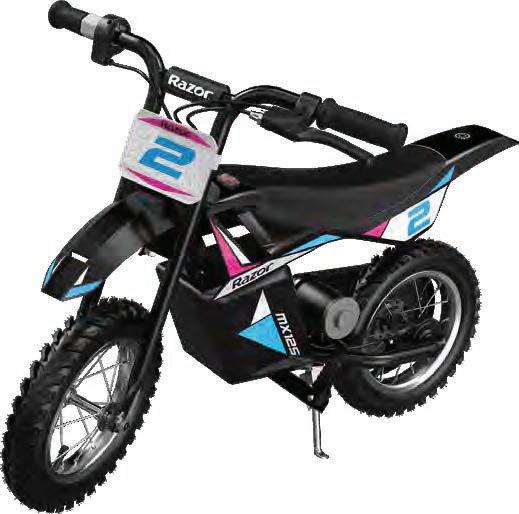 The MX125 is the newest addition to the Razor MX range, featuring small-size moto power for a smaller, younger rider! Its lightweight build and smaller size makes it ideal. With a twist-grip throttle and 32cm pneumatic knobby tyres, the MX125 can reach speeds of up to 13 km/h with a run time of up to 40 minutes.