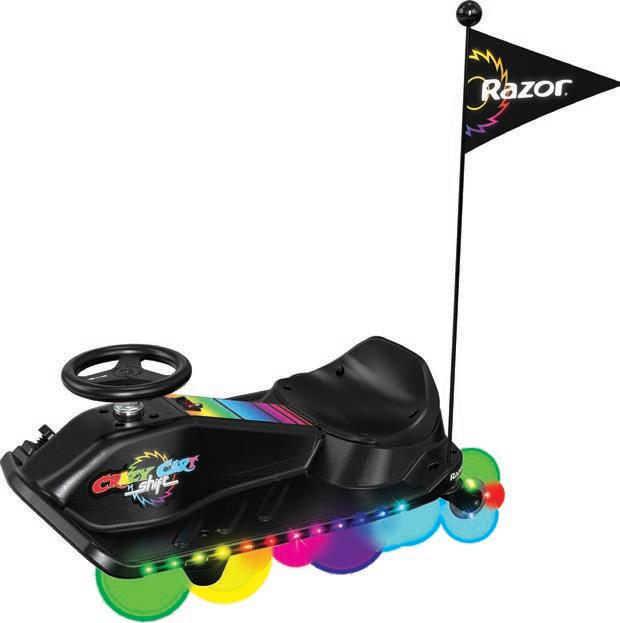 The all-new Crazy Cart® Shift™ Lightshow from Razor delivers the intense fun and excitement of driving and drifting to kids as young as six years old! Drive, spin, and drift on a bed of light with the all-new Crazy Cart Shift Lightshow.