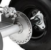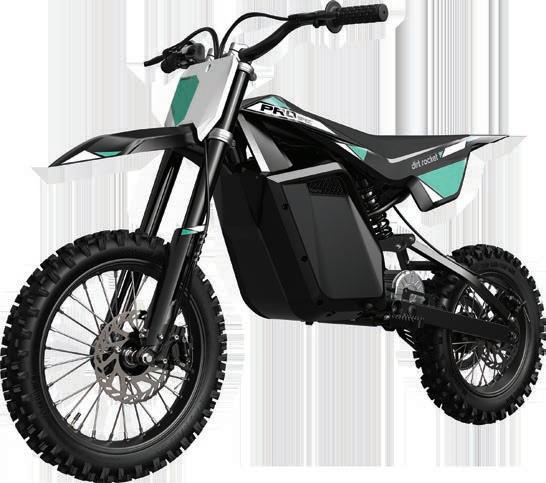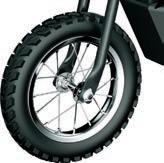 Motorcycle-spec tires with frontand rear-specific tread, disc brakes and dual suspension make this electric ride ready to rock the dirt.