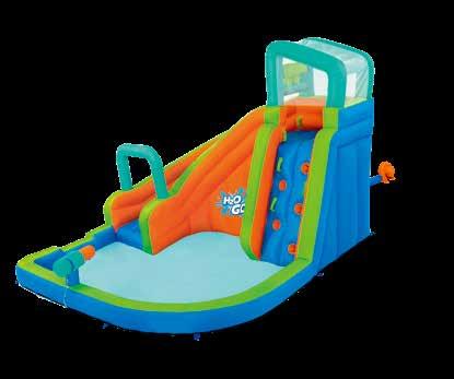 • Surprise soak bucket randomly dumps water and keeps slide slippery