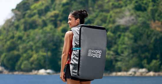 Folds horizontally and vertically, for 40% more compact structure than traditional inflatable boards and comes with a compact backpack for easy transport