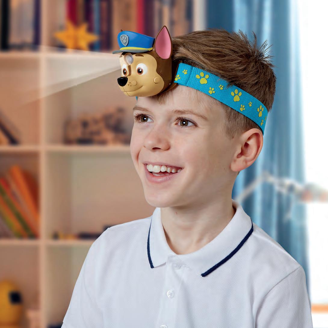 A new Nick Jr. Paw Patrol Head Torch features Chase. Kids press once for light and again to trigger a fun police siren sound. The torch features two angles: straight for outdoor adventures such as walking or camping, or tilted for catching up on Paw Patrol books and comics. The headtorch comes with an adjustable strap suitable for children of all ages.