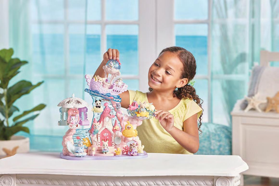 From Sylvanian Families, Epoch will be showcasing two new sets from the Amusement Land collection. Available now, the pretty pastel blue, freewheeling Floating Cloud Rainbow Train features a plume of smoke escaping the chimney which provides seating for three baby figures and bobs up and down as the train moves along. It also comes with a brand-new figure, from the new Fennec Fox family, baby girl Yulie, in an exclusive outfit. Launching in July, the Baby Mermaid Castle is packed with 12 ocean themed features including a marine merry-go-round and a jellyfish swing. It also includes three baby figures in under-the-sea outfits and can be easily combined with the Baby Amusement Park for double the fun.
