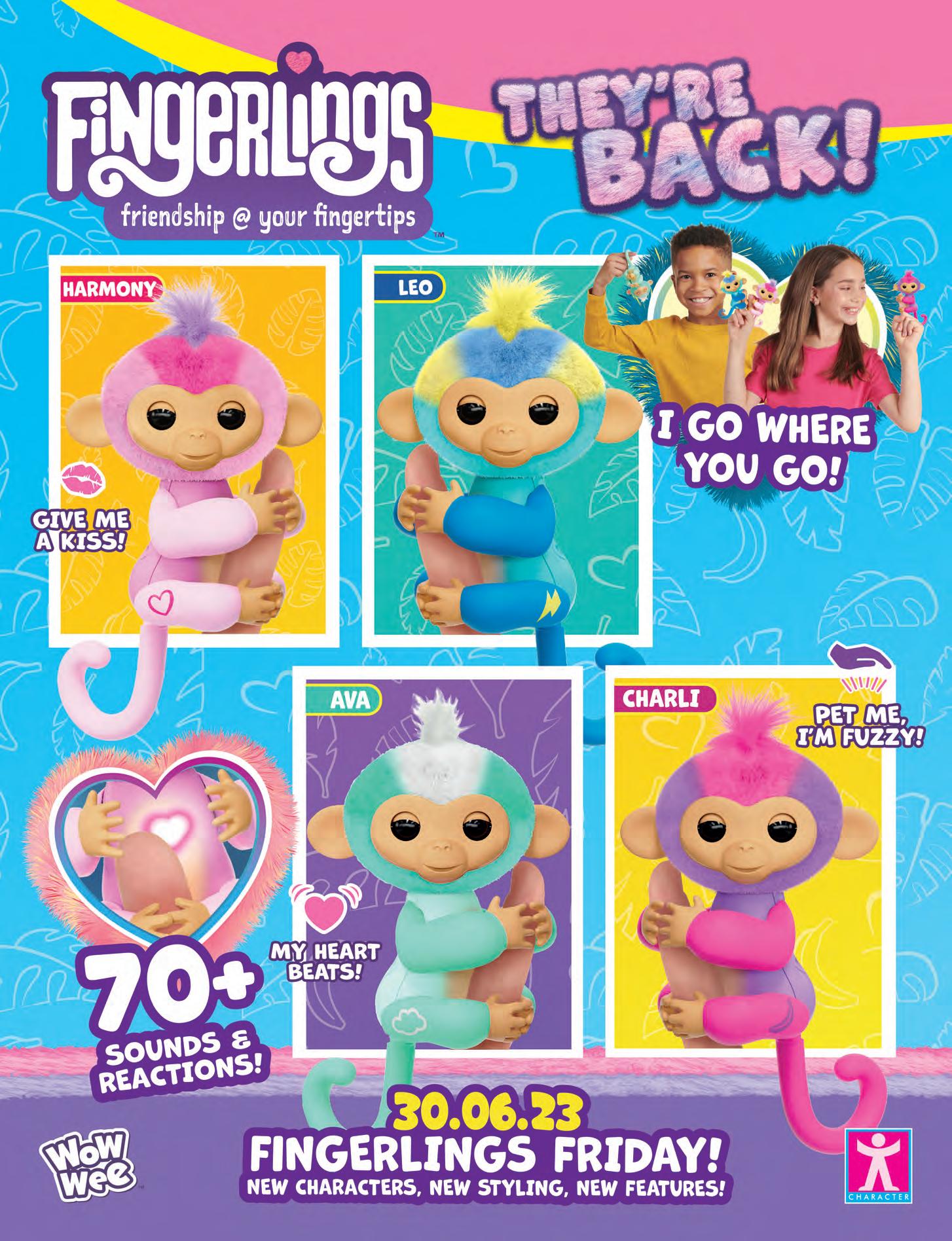 AW23 sees the range extend with the new Arctic Glow Curlimals including Perry Polar Bear and Pip Penguin featuring super-soft sparkly fur, Arctic animal sounds and a special light-up belly which changes colour when they’re warm and happy. Also new for AW23, Flutter Wonder Bella Bear brings a new play pattern to the range, with sparkly, light up wings which flutter to show how she's feeling; she’s a Curlimal with a little Flutter Wonder on top.