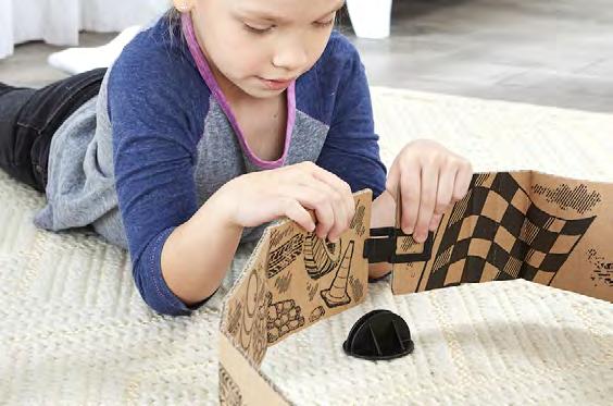 Encouraging creativity for all ages, the possibilities for track configurations are endless as racers can use extra cardboard including old recyclable household items to expand their tracks and design and construct their own raceways. The sets are intended for children 5 years +.
