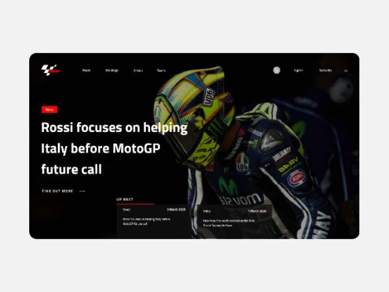 Desain inspirasiLandingpageMotoGPwebsitedengantampilan simpledenganpenggunaaniconyangsimple.