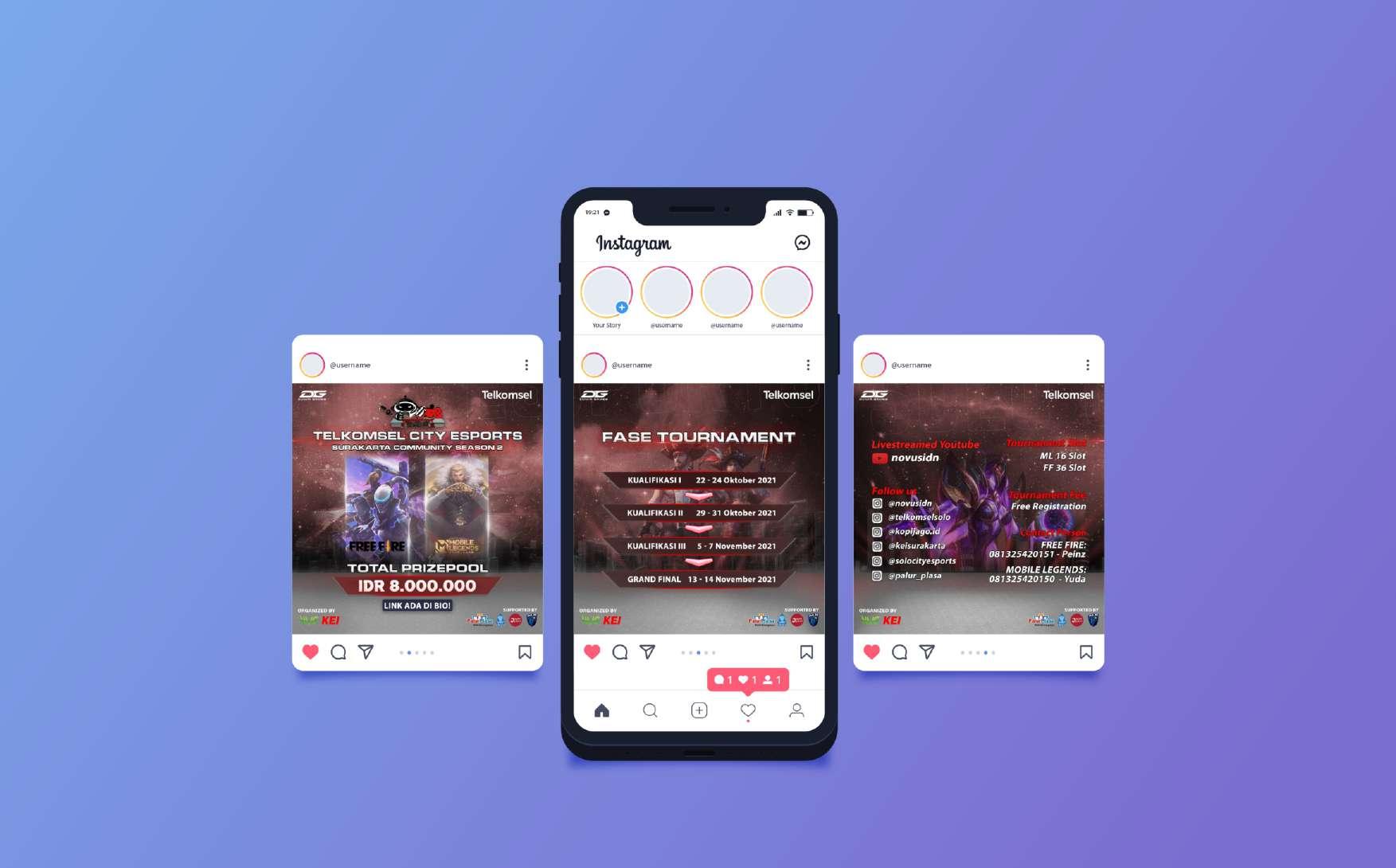 DesainSosialMediaCarourselluntukEsportTurnamentdiselengarakanoleh TelkomselCityEsport