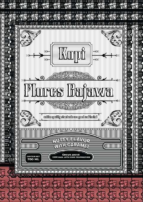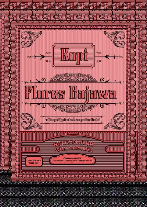 Sayamembuatdesainkemasankopi"KopiFloresbajawa"yangmerupakansalahsatukopiindonesiayang mendunia.Jugamemilikicitarasakopiyangberbedandengankopiindonesialainnya,kopifloresmemiliki rasamanisdengansensasikacang-kacangandengansentuhanrasakaramel.Desainkemasanini mengunakangayadesainretro,vintageyangmenghasilkandesainyangcukupdetail.