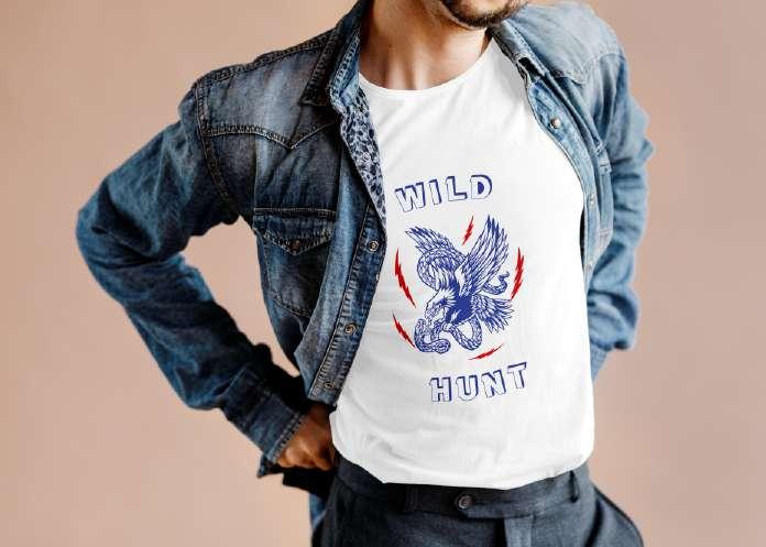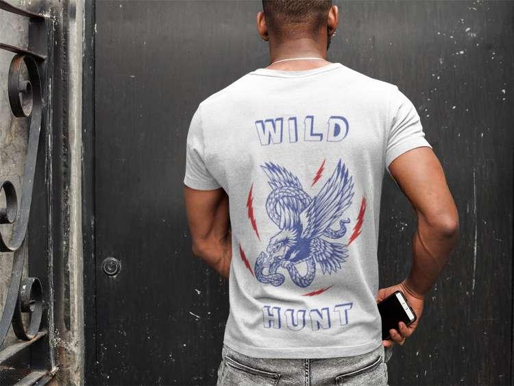 Desainillustrasi“WildHunt”inidiaplikasikanuntukjacket,kaos.