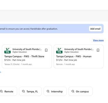 • Use Handshake to explore and apply for internships, part-time work, or full-time roles in your field.