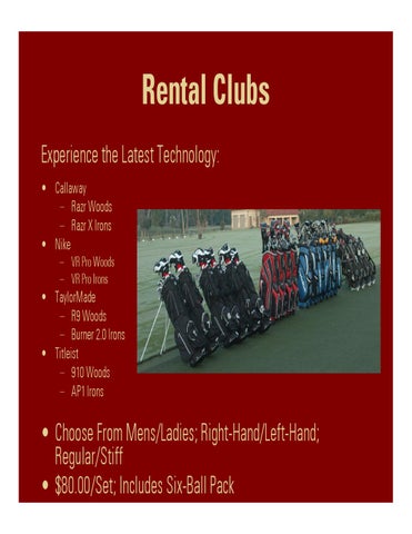 Rental Clubs Experience the Latest Technology: • Callaway – Razr Woods – Razr X Irons • Nike – VR Pro Woods – VR Pro Irons